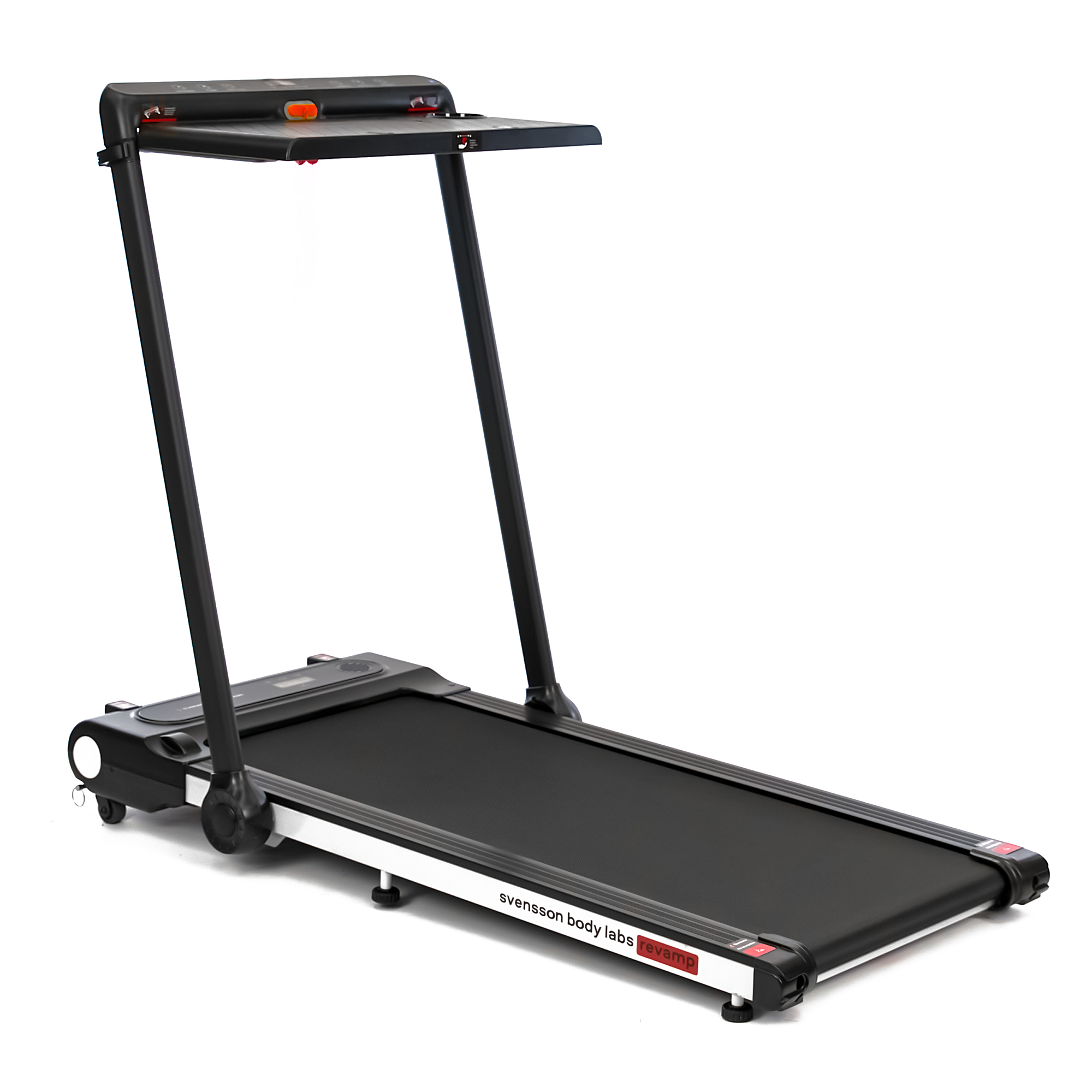Беговая дорожка SVENSSON BODY LABS REVAMP — это идеальный выбор для домашних тренировок, который сочетает в себе современные технологии, высокую надежность и элегантный дизайн. Максимально допустимая нагрузка в 110 кг и мощный двигатель Mitsubishi Motors Corporation мощностью 1,75 л.с. гарантируют стабильную и долговечную работу тренажера. Скорость до 12 км/ч и регулировка угла наклона на два уровня добавляют разнообразие и обеспечивают высокую эффективность занятий. Тренажер оснащен LED-консолью с русским и английским интерфейсом, которая отображает все ключевые параметры тренировки: время, скорость, дистанцию, калории, уровень наклона и текущую программу. В распоряжении пользователя 16 программ, включая 12 встроенных и 3 целевых. Дополнительно предусмотрен ручной режим для индивидуальной настройки. Съемная парта и пульт-браслет для дистанционного управления обеспечивают максимальный комфорт во время тренировки. Беговое полотно шириной 44 см и длиной 105 см с антискользящим покрытием и системой амортизации из двух резиновых эластомеров минимизирует ударную нагрузку на суставы, делая занятия безопасными. Механическая регулировка угла наклона с шагом 1° позволяет адаптировать нагрузку под индивидуальные потребности. Прочная рама с антикоррозийным покрытием, выполненная из качественных материалов, и декор из ударопрочного полистирола HIPS гарантируют долговечность тренажера. SVENSSON BODY LABS REVAMP оснащена Bluetooth-колонкой для воспроизведения музыки с телефона, что делает тренировки более увлекательными. Подставка для планшета или смартфона позволяет совмещать тренировки с просмотром фильмов или видеокурсов. Для удобства хранения предусмотрены складывающаяся конструкция и транспортировочные ролики. В сложенном виде дорожка занимает всего 140,5 × 69 × 13 см, что делает ее удобной для хранения даже в небольших квартирах. Размеры в рабочем состоянии составляют 129,5 × 69 × 102 см. Питание от сети 220 В, энергоэффективность двигателя и продуманная система амортизации делают дорожку идеальным выбором для домашнего использования. SVENSSON BODY LABS REVAMP — это стильное и функциональное решение для тех, кто стремится поддерживать форму и заботиться о здоровье в домашних условиях. Ключевые преимущества SVENSSON BODY LABS REVAMP: • диапазон скоростей от 1 до 12 км/ч; • встроенная Bluetooth-колонка; • пульт-часы для дистанционного управления дорожкой; • максимальный вес пользователя до 110 кг.