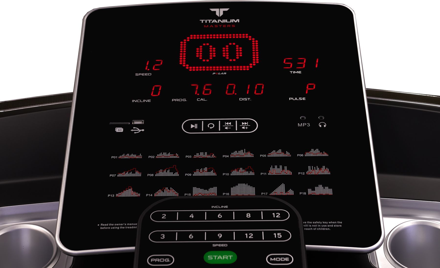 Тренировочный компьютер Titanium Masters Physiotech TLС представлен основным LED-дисплеем и 6-ю буквенно-цифровыми LCD-дисплеями. Встроенные программы ориентированы на любые возможные задачи - снижение веса, тренировку выносливости или скоростных качеств. Помимо предустановленных программ, можно воспользоваться самостоятельно регулируемым ручным режимом, а также создать уникальную тренировку в одном из 3-ех пользовательских режимов. Для тех кому важен контроль за частотой пульса можно воспользоваться одной из 3 пульсозависимых программ. Для точного определения сердечного ритма и просто комфортной тренировки в компьютер встроен высокоточный беспроводной телеметрический приемник производства Polar.
