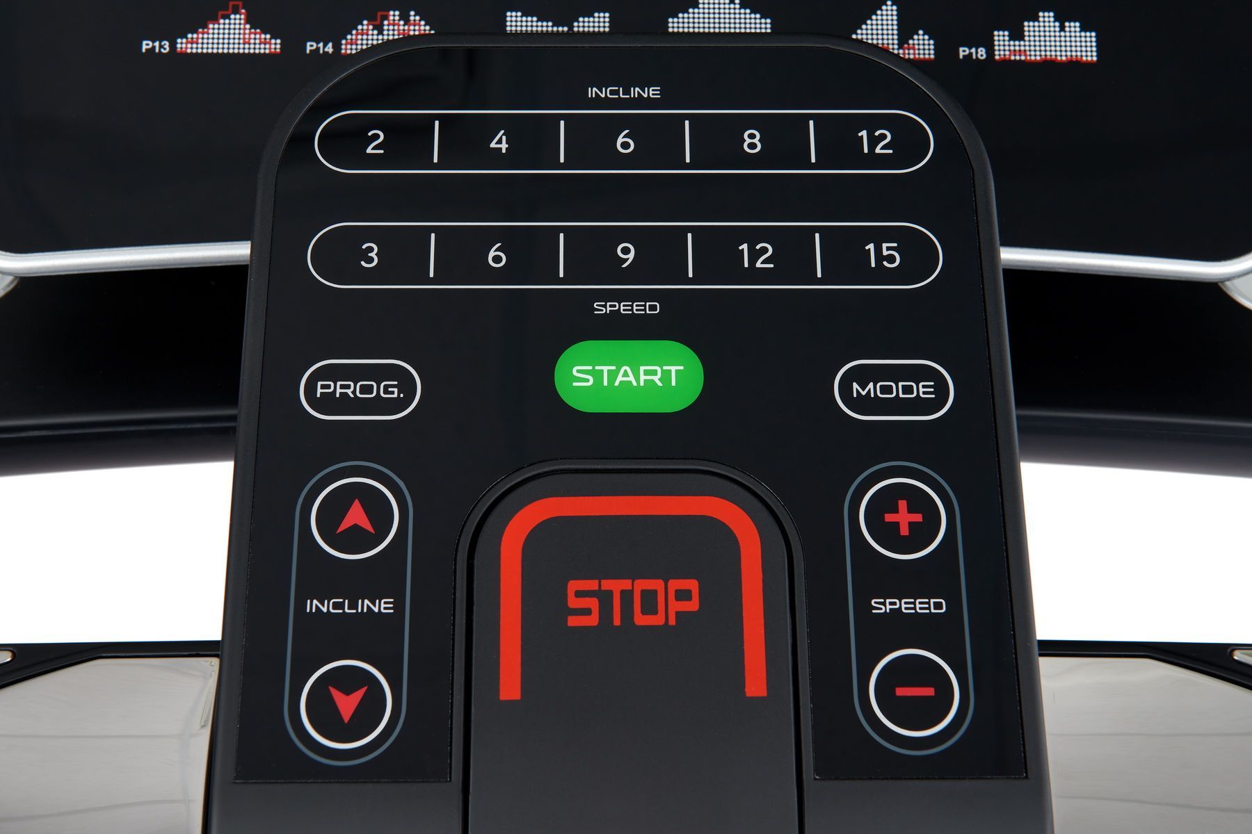 Тренировочный компьютер представлен голубым многофункциональным дисплеем диагональю 7 дюймов (17,8 см.). Встроенные программы ориентированы на любые возможные задачи - снижение веса, тренировку выносливости или скоростных качеств. Помимо предустановленных программ, можно воспользоваться самостоятельно регулируемым ручным режимом, а также создать собственную программу в одном из 3-х пользовательских режимов. 3 пульсозависимые программы с предустановленными значениями 60%, 75%, 90% отвечают за тренировку тех пользователей, которым важно контролировать показатели частоты сердечного ритма. Для точного определения пульса и просто комфортной тренировки в компьютер встроен высокоточный беспроводной телеметрический приемник.