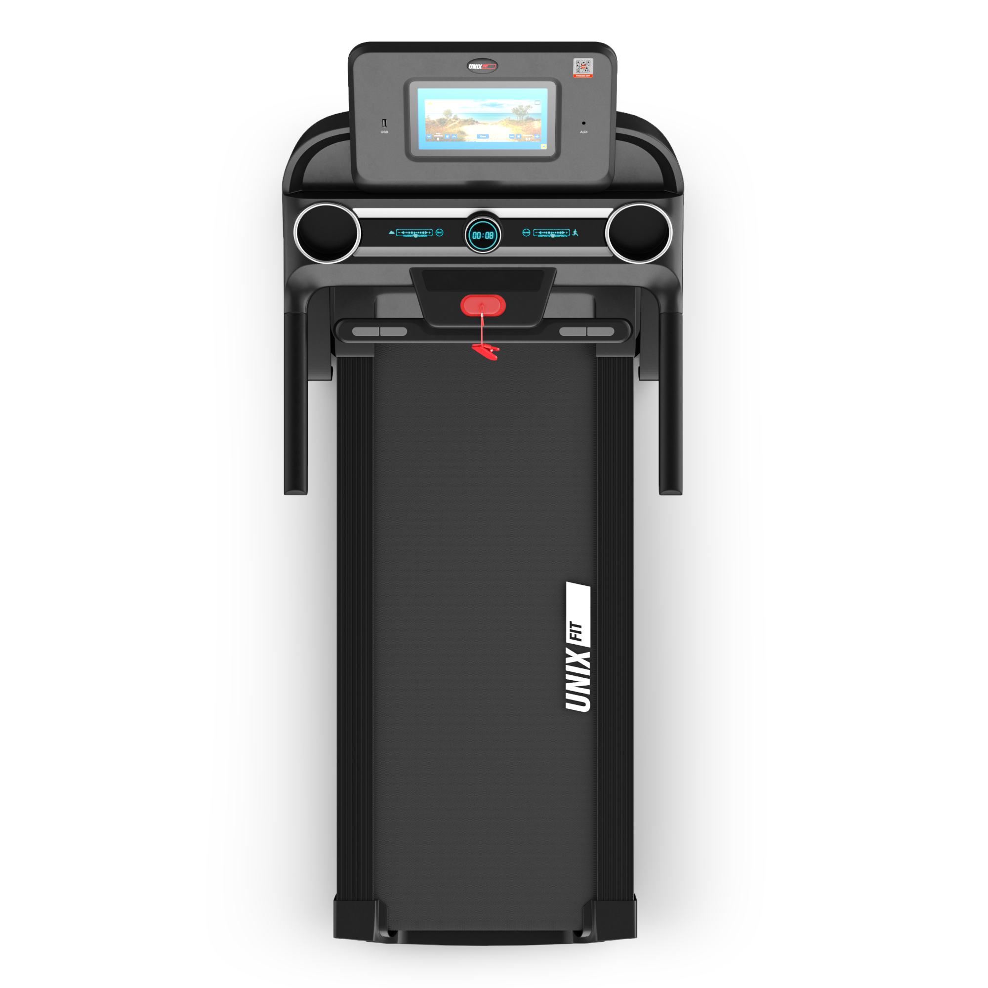 У дорожки имеется интуитивно понятная консоль управления с цветным TFT-дисплеем размером 10,1" (25 см). По центру консоли располагается кнопка включения и остановки тренировки. Движением кнопки по и против часовой стрелки можно изменить скорость движения бегового полотна, и так же на дополнительном дисплее отследить данные о тренировке. По обе стороны от кнопки встроенные ползунки изменения скорости и угла наклона.