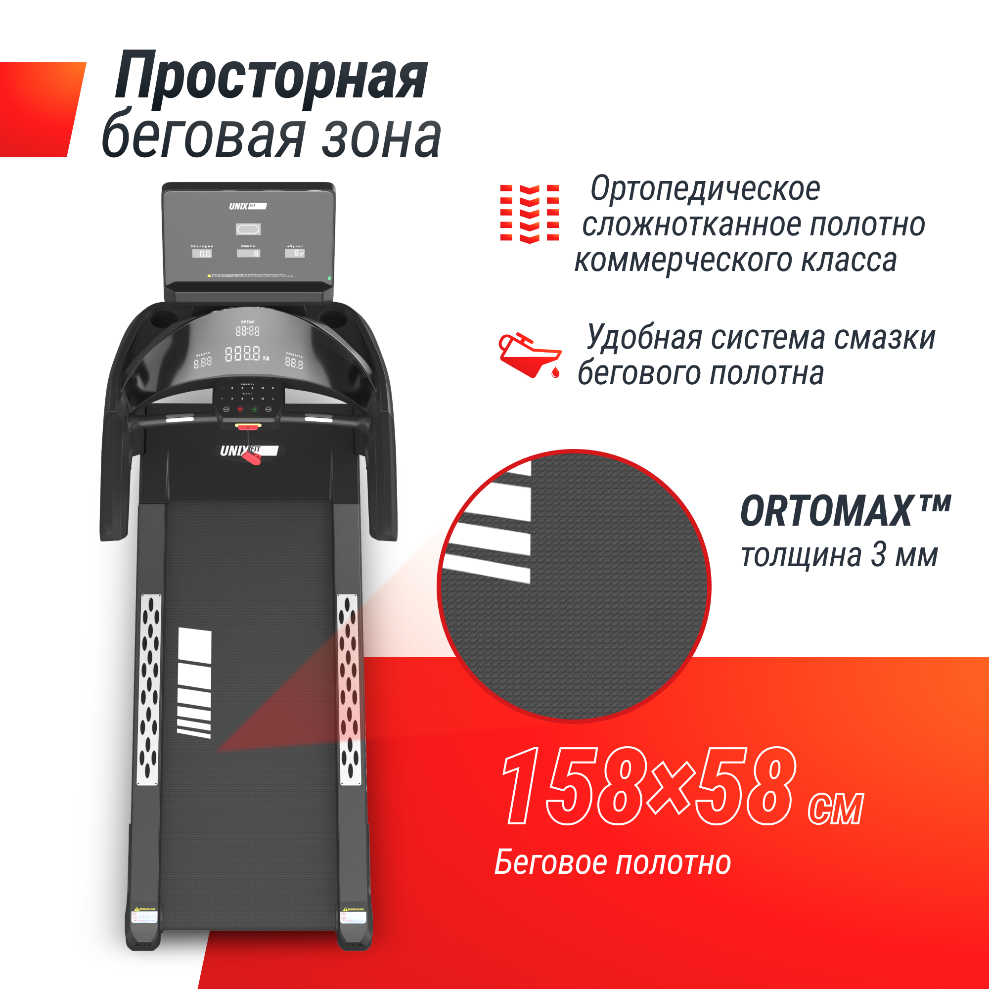 - Амортизация. Беговое полотно оборудовано современной ортопедической системой амортизации. Ребристая поверхность бегового полотна улучшает сцепление с кроссовками и делает тренировку более безопасной, если вы используете функцию наклона бегового полотна.