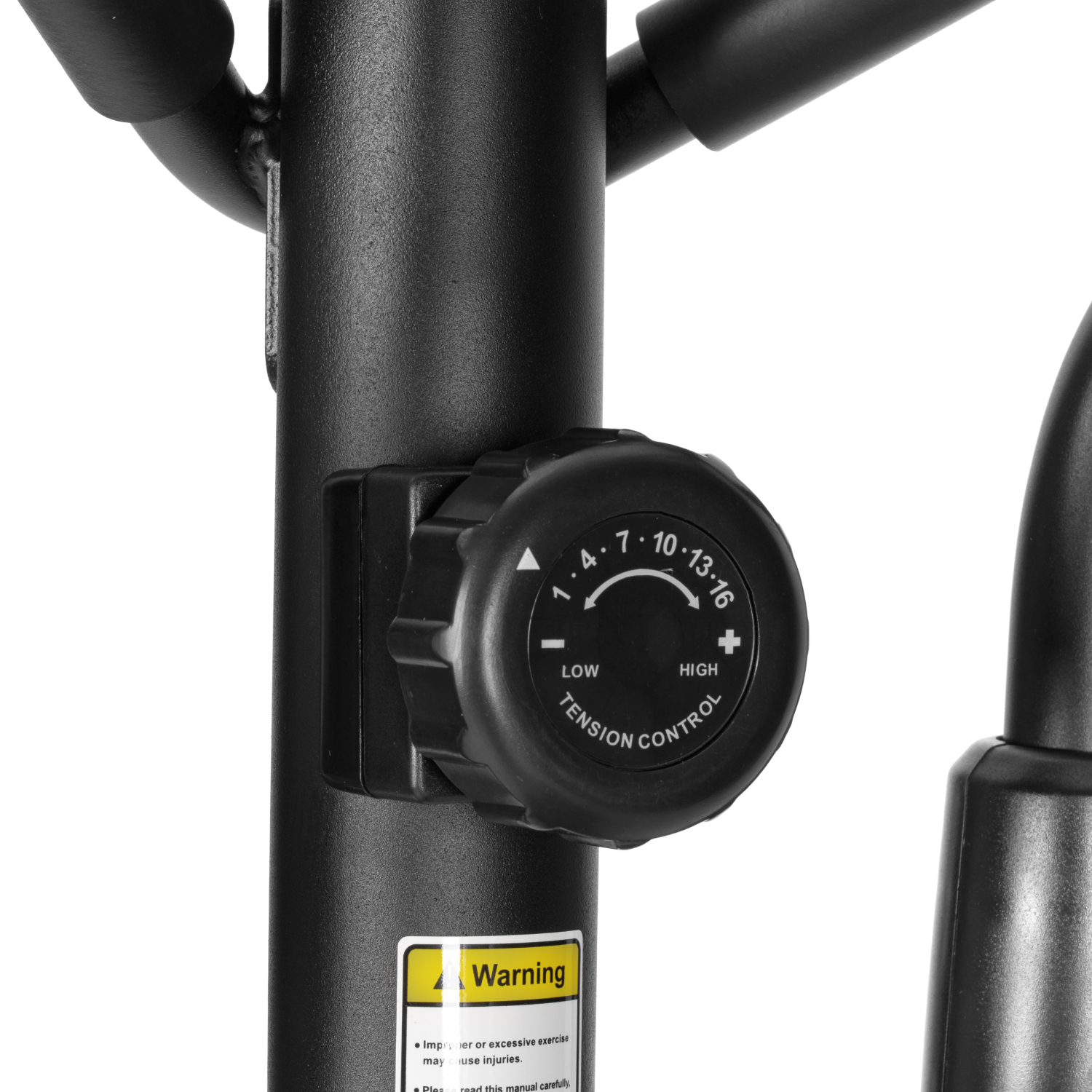 Модель способна выдержать пользователя весом до 160 кг. Тренажёр оснащён магнитной системой нагрузки с инерционным весом маховика 10 кг. Механическая регулировка сопротивления с 16 уровнями нагрузки позволяет подобрать оптимальную интенсивность тренировки в зависимости от уровня подготовки пользователя.