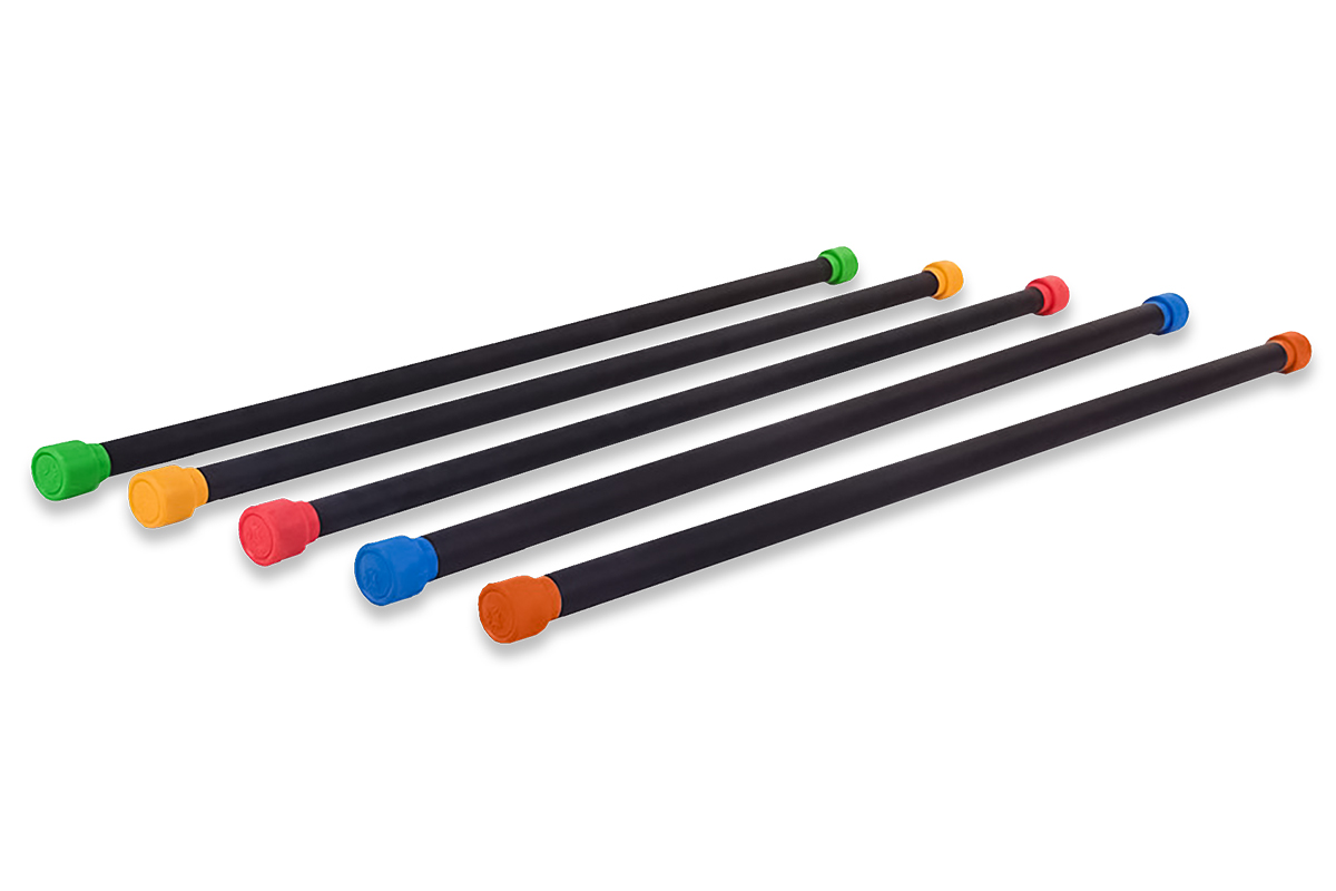 Бодибар разного веса имеют удобную цветовую маркировку на наконечниках;