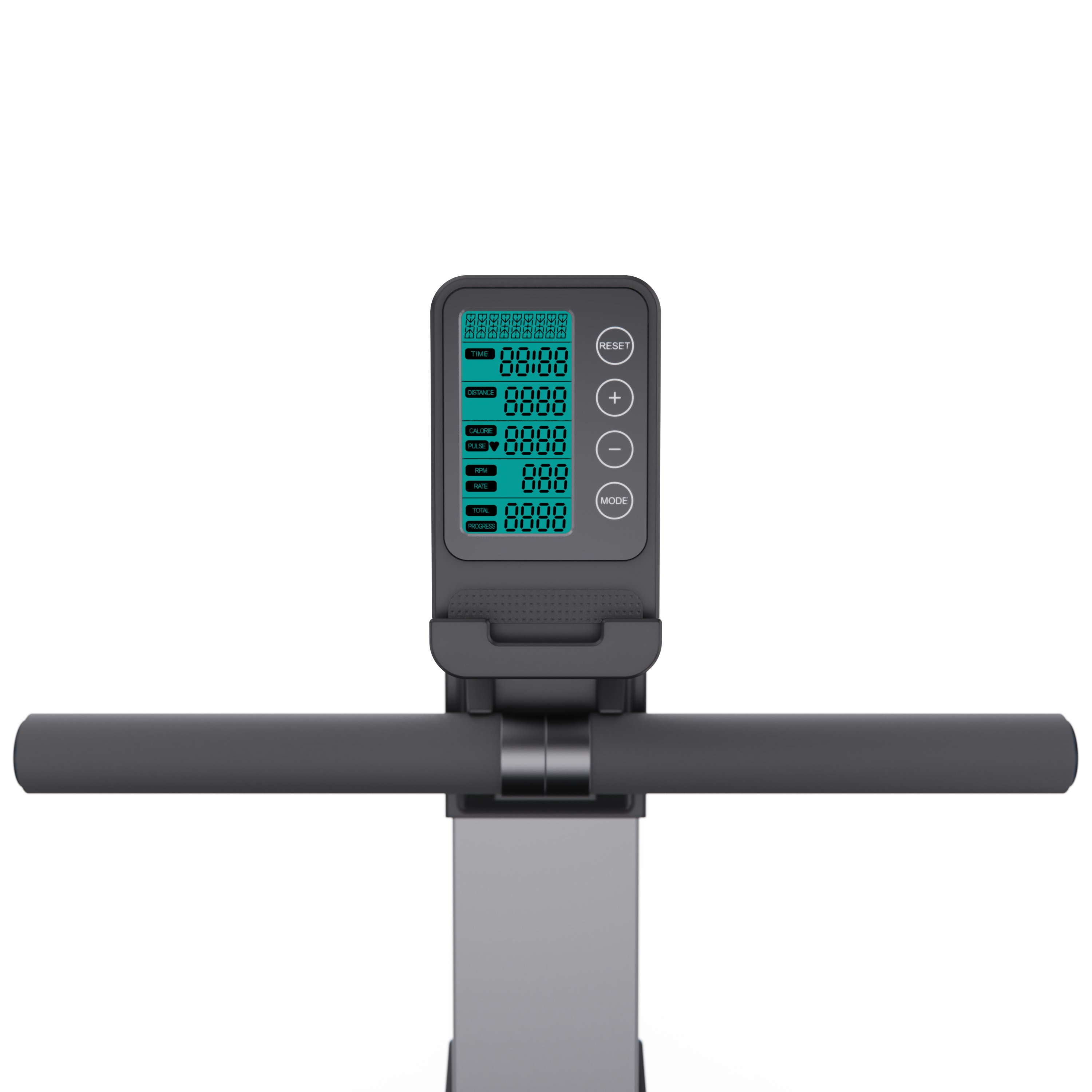 На встроенном монохромном LCD-дисплее отображаются все важные параметры тренировки: время, дистанция, калории, количество гребков, количество гребков в минуту и общее количество гребков. Дисплей работает от двух батареек типа AAA (входят в комплект). Для расширения функционала предусмотрено подключение по Bluetooth к приложению Kinomap, что позволяет отслеживать прогресс и делать занятия более увлекательными.