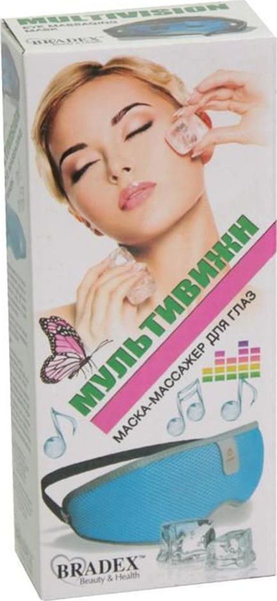 Современный человек много времени проводит, смотря в экран компьютера, телефона или планшета, из-за чего очень часто устают глаза. Постоянный недосып способствует появлению темных кругов под глазами и усталости глаз. От этих проблем Вам поможет избавиться уникальный Массажер для глаз «МУЛЬТИВИЖН».  Преимущества: •    Мягкая вибрация и рельеф массажера позволяют избавиться от темных кругов под глазами благодаря деликатному массажному воздействию •    Гелевый вкладыш, который можно охладить или разогреть, оказывает контрастный  температурный эффект •    Встроенные динамики с возможностью подключения внешних устройств помогут Вам провести релаксацию глаз с удовольствием •    Размер ремня для закрепления маски на голове легко регулируется