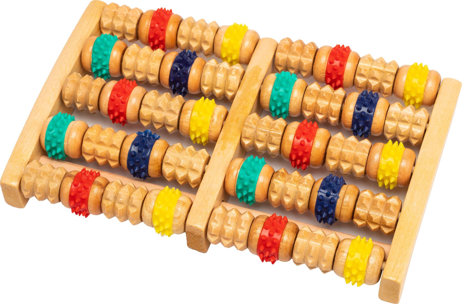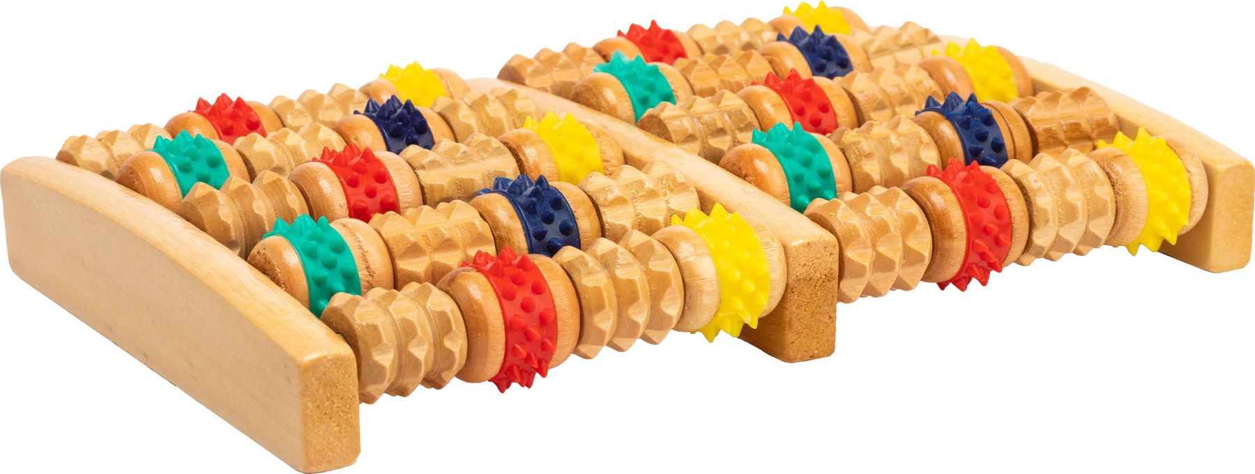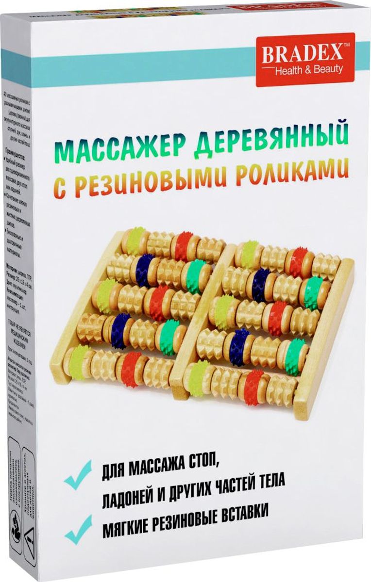 Массажер из натурального дерева приятен на ощупь, практичен и долговечен. 40 массажных роликов с разными видами шипов (дерево/резина) для акупунктурного массажа ступней, рук, спины и других частей тела.   Такой деревянный массажер с роликами – самое простое решение для релаксации и снятия мышечного напряжения.  Используйте роликовый массажер дома, в офисе, на даче, в долгой поездке, даже в бане после парной.  Преимущества: ●    Удобный размер для одновременного массажа двух стоп или ладоней.  ●    Сочетание мягких резиновых и жестких деревянных шипов. ●    Безопасные и долговечные материалы.