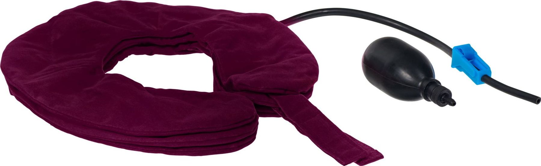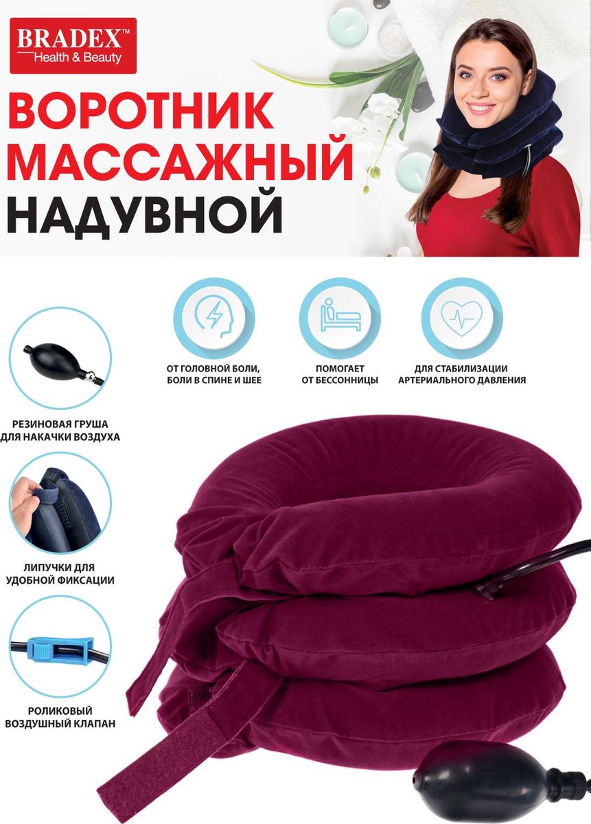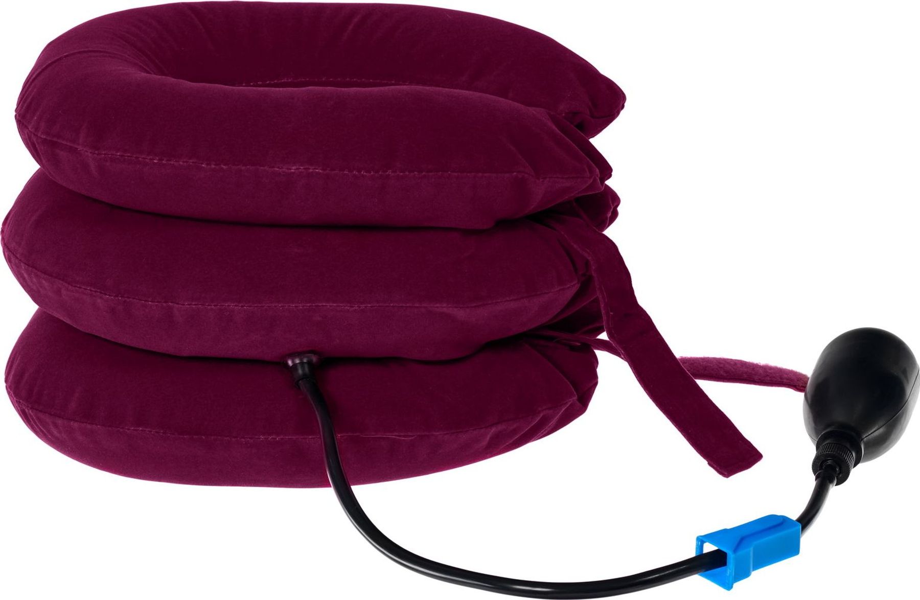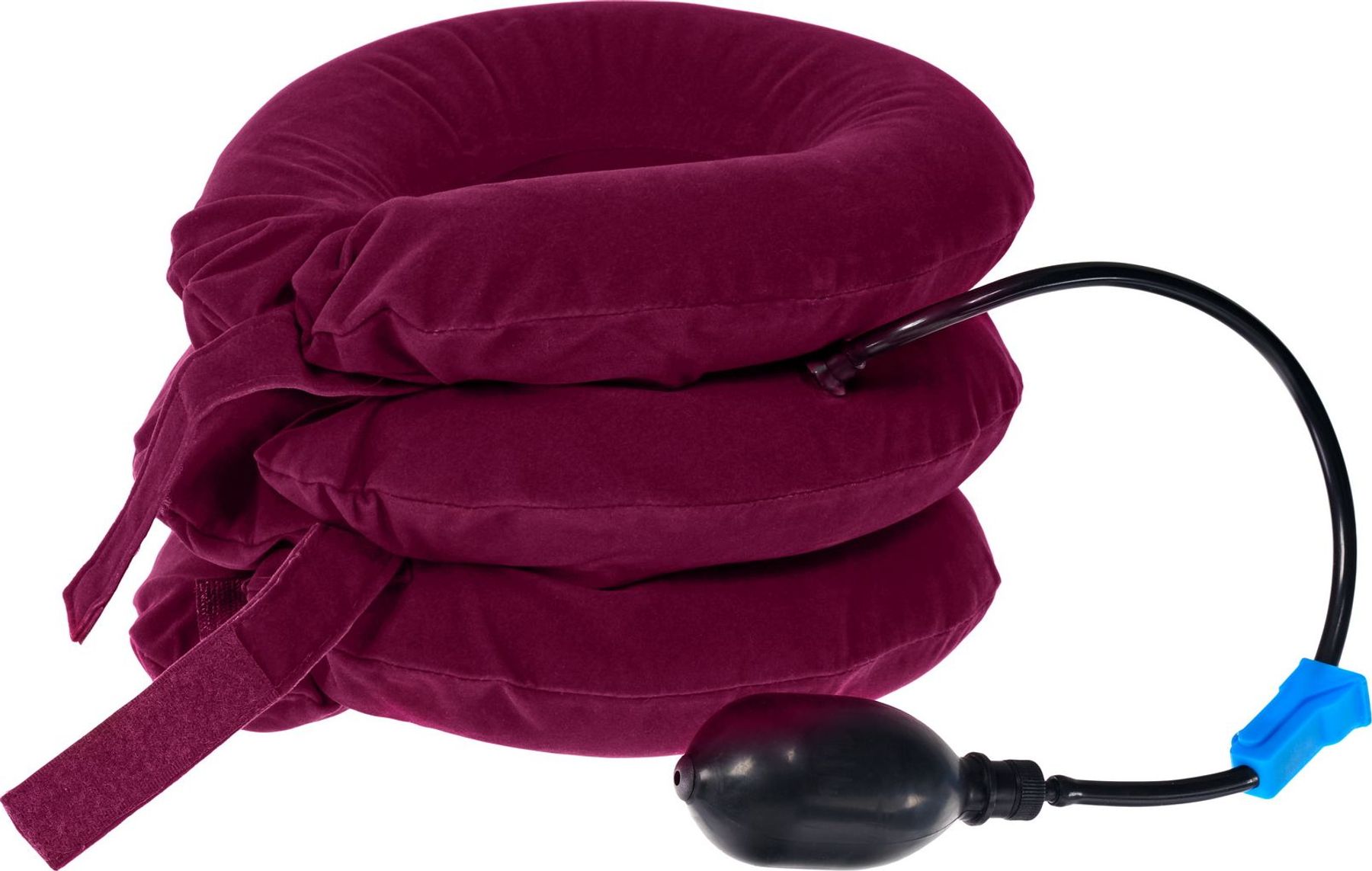Массажный надувной воротник – эффективное средство для снятия нагрузки, мягкого вытяжения шейного отдела позвоночника, снятия зажимов и дискомфорта, улучшения кровообращения в зоне воздействия, а также питания головного, спинного мозга и работы плечевого пояса, рук и пальцев. Воротник оказывает мягкое воздействие на мышцы и связки шеи, верхней части спины. Регулярное использование воротника особенно рекомендуется людям при повышенных нагрузках и малоподвижном образе жизни, при многочасовой работе в положении с наклоненной головой, после езды за рулем, в поезде и самолете. Массажный воротник будет способствовать восстановлению подвижности шеи и деликатному снятию болезненных ощущений, а также подтяжке овала лица. Воротник рекомендован при частых головных болях и бессоннице, пониженном или повышенном давлении, нарушении осанки, остеохондрозе – не в период обострения – и при реабилитации после травм.  Преимущества: • Эффективное средство для снятия нагрузки с шеи и спины. • Вытяжение шейного отдела позвоночника. • Улучшение кровообращения.