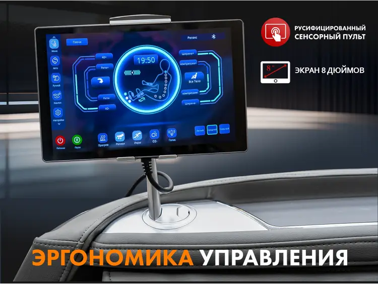 8-дюймовый русифицированный сенсорный пульт управления и панель быстрых кнопок FAST CONTROL для легкого управления массажем и наклоном кресла