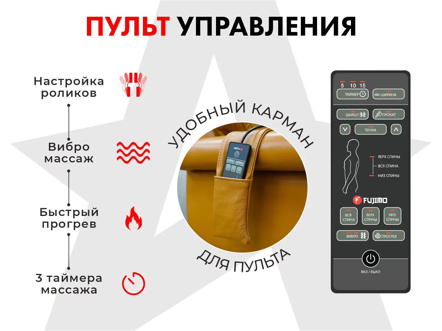 - Русифицированный пульт управления с таймером 5-10-15 минут
