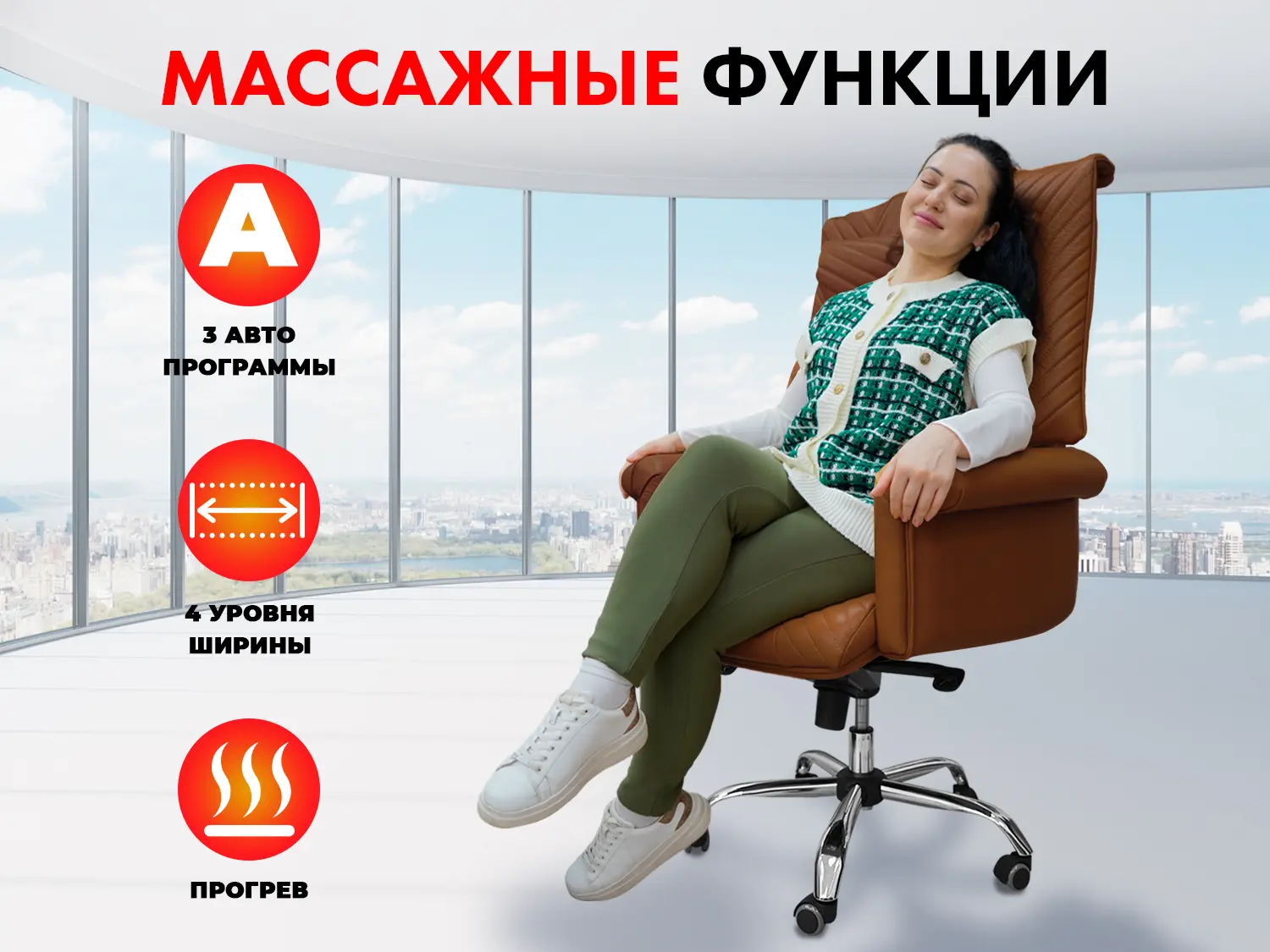 —Офисное массажное кресло PRESIDENT PRO Терракот