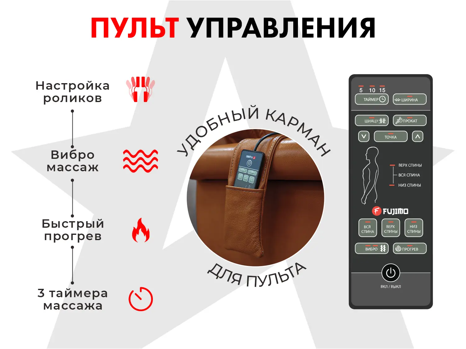 • Русифицированный пульт управления с таймером 5-10-15 минут