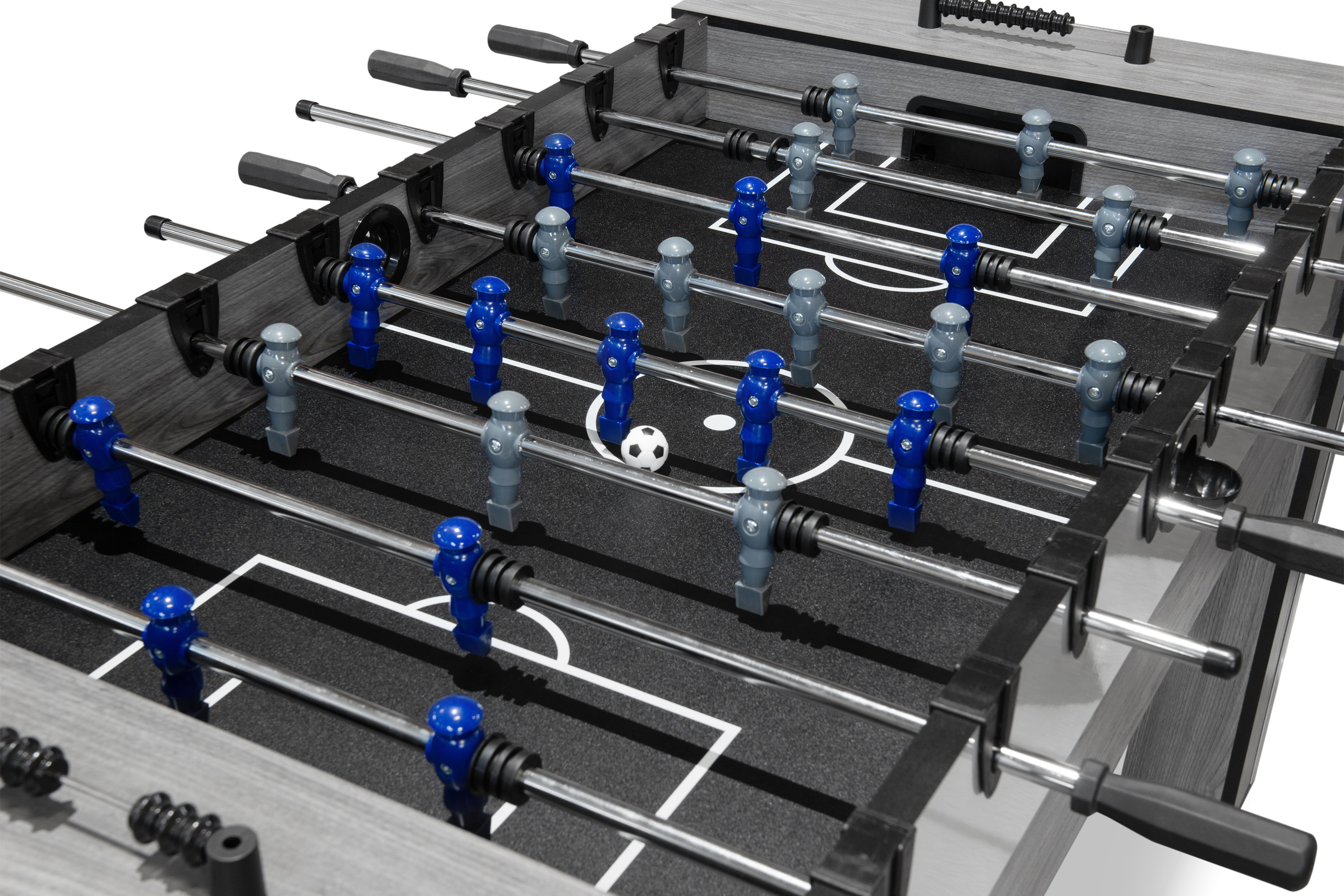 На обоих концах стола расположены механические счётчики голов, а также предусмотрены мячеприёмники и лотки для ввода мячей на игровое поле.