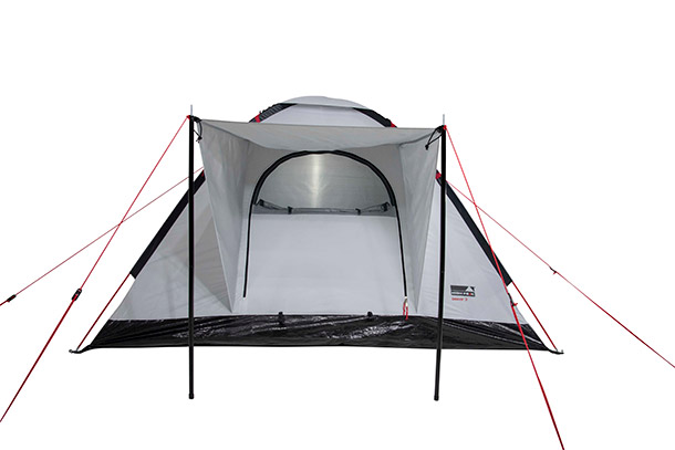 Просторная палатка Beaver 3 High Peak с тентом-козырьком над входом. Тент палатки имеет алюминиевое покрытие и фактор защиты от ультрафиолета 60, что предотвращает чрезмерный нагрев палатки. Палатка почти квадратная по периметру (200х180 см). Фиберглассовые  дуги продеваются через рукава на внешнем тенте, и палатка устанавливается за считанные минуты даже в дождь. Материал тента имеет полиуретановое покрытие и водонепроницаемость не менее 1500 мм водяного столба. Швы проклеены. Это позволяет защититься от ветра и дождя. Вентиляционное окно расположено в верхней точке купола палатки и защищено тканевым «грибом». Палатка имеет 4 оттяжки, что позволяет надежно ее фиксировать во время ветреной погоды. Вход в палатку защищает тканевый полог, а  если погода жаркая, то можно оставить только москитную сетку на входе.  Рекомендуем использовать эту палатку в летнее время для походов выходного дня.