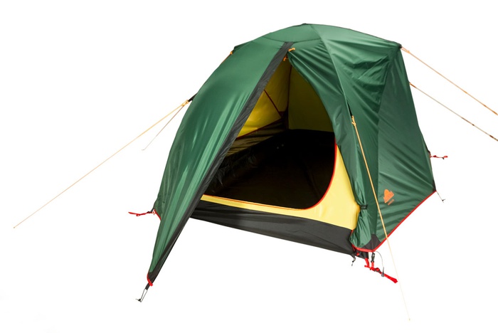 Одна из самых комфортных двухместных палаток на рынке. За счет третьей полудуги боковые стенки палатки почти вертикальны, это дает большой простор на уровне плеч, так как ширина в плечах в 135 см фактически равна ширине по полу 140 см. Соотношение веса палатки к размеру в чехле почти идеально. Палатка рассчитана на двух туристов, но возможно размещение третьего при укладке «валетом». Внешний тент надежно защитит вас от сильного ветра, дождя и снега. Палатку можно использовать круглогодично, но следует избегать больших снеговых нагрузок. Палатка легко собирается в течение 3-5 минут, и при растягивании всех ветровых оттяжек очень устойчива. Комфорт проживания обеспечивается двухслойной конструкцией палатки, поток воздуха, проходя под нижним краем внешнего тента и нагреваясь, поднимается вверх в пространство между внутренней и внешней палаткой, испаряя конденсат, забирая продукты дыхания, выводит их через вентиляционную систему в верхней точке купола палатки. Также прослойка воздуха между внешним тентом и внутренней палаткой работает как термобарьер и спасает от резкого перепада температур.