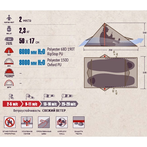 Два человека с багажом смогут переодеться и приготовить еду внутри палатки. Эффективная система вентиляции Airflow Wall легко регулирует подачу воздуха и уменьшение конденсата.