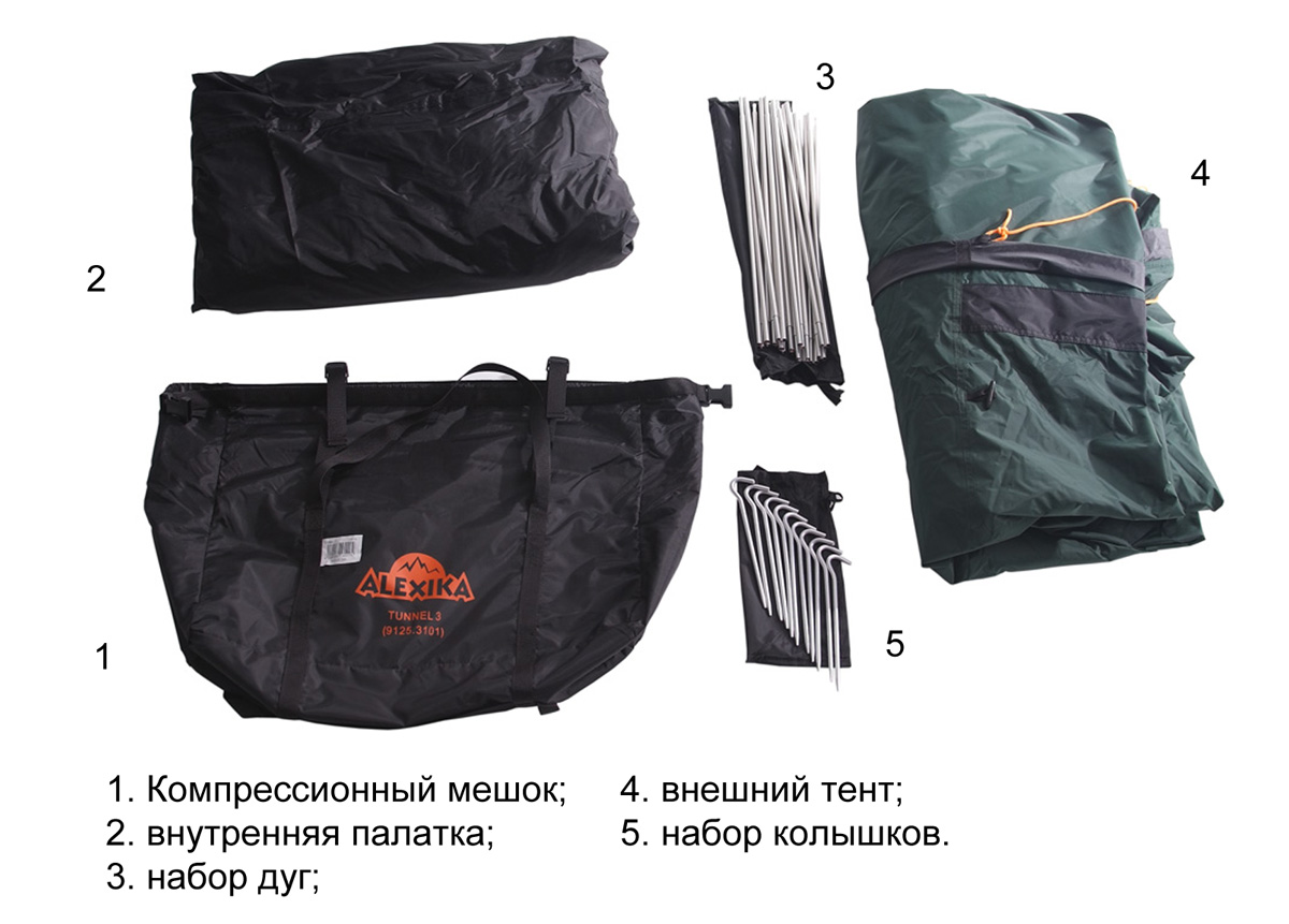 Трехместная туристическая палатка-полубочка Tunnel 3 сделает отдых на природе легким и приятным. Конструкция палатки, состоящей из большой внутренней комнаты и огромного тамбура, свободно вмещающего велосипеды, походную кухню и массивные рюкзаки, позволяет чувствовать себя комфортно. Материал внешнего тента и пола отлично защищает от влаги и ветра, а проклеенные швы не допускают проникновения внутрь палатки капель воды. Дно усилено стропой, придающей дополнительную прочность. Молнии тента застегиваются на алюминиевые защитные крючки .
