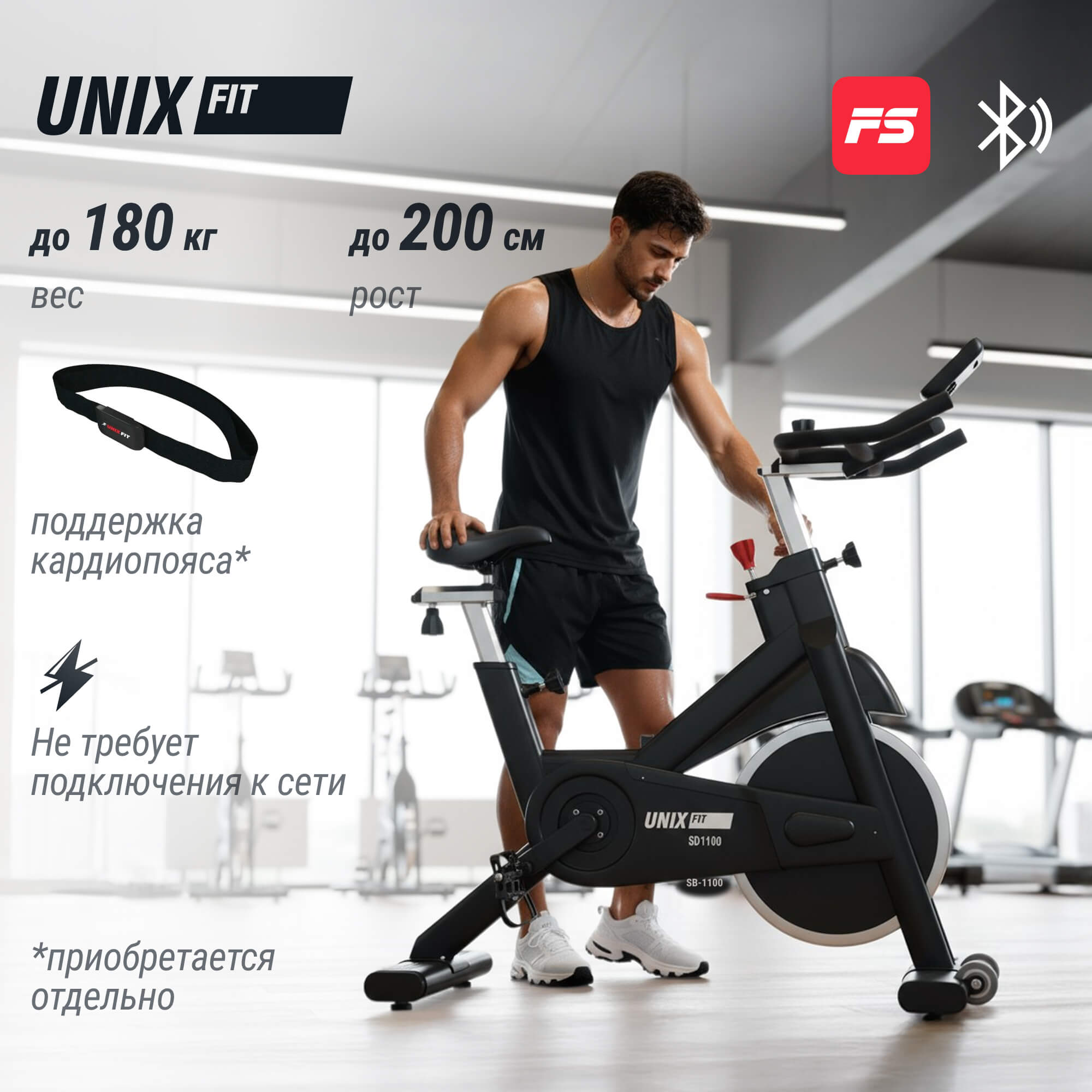 Интеграция с приложением FitShow синхронизирует данные о тренировке и пульсе в режиме реального времени.